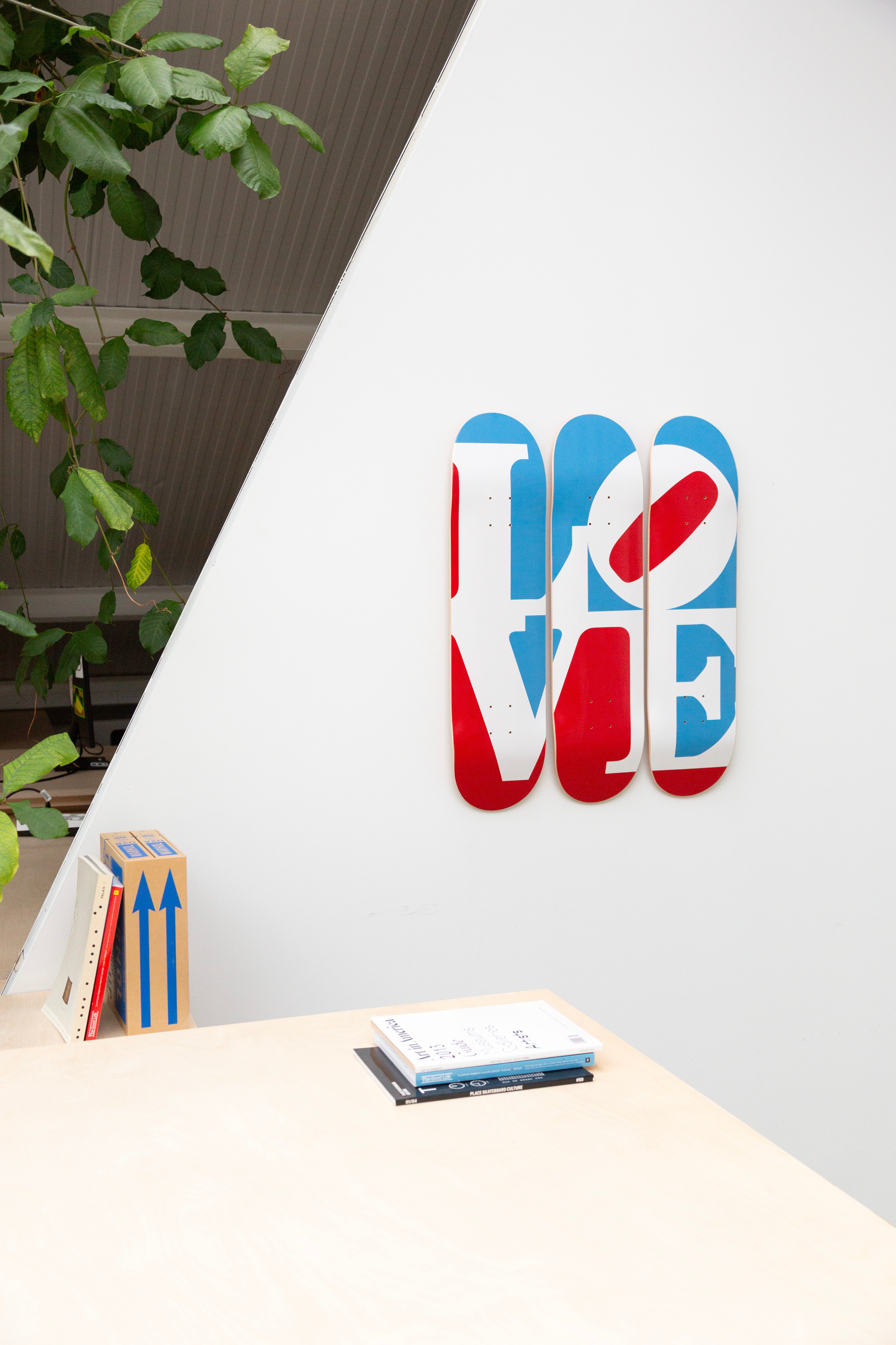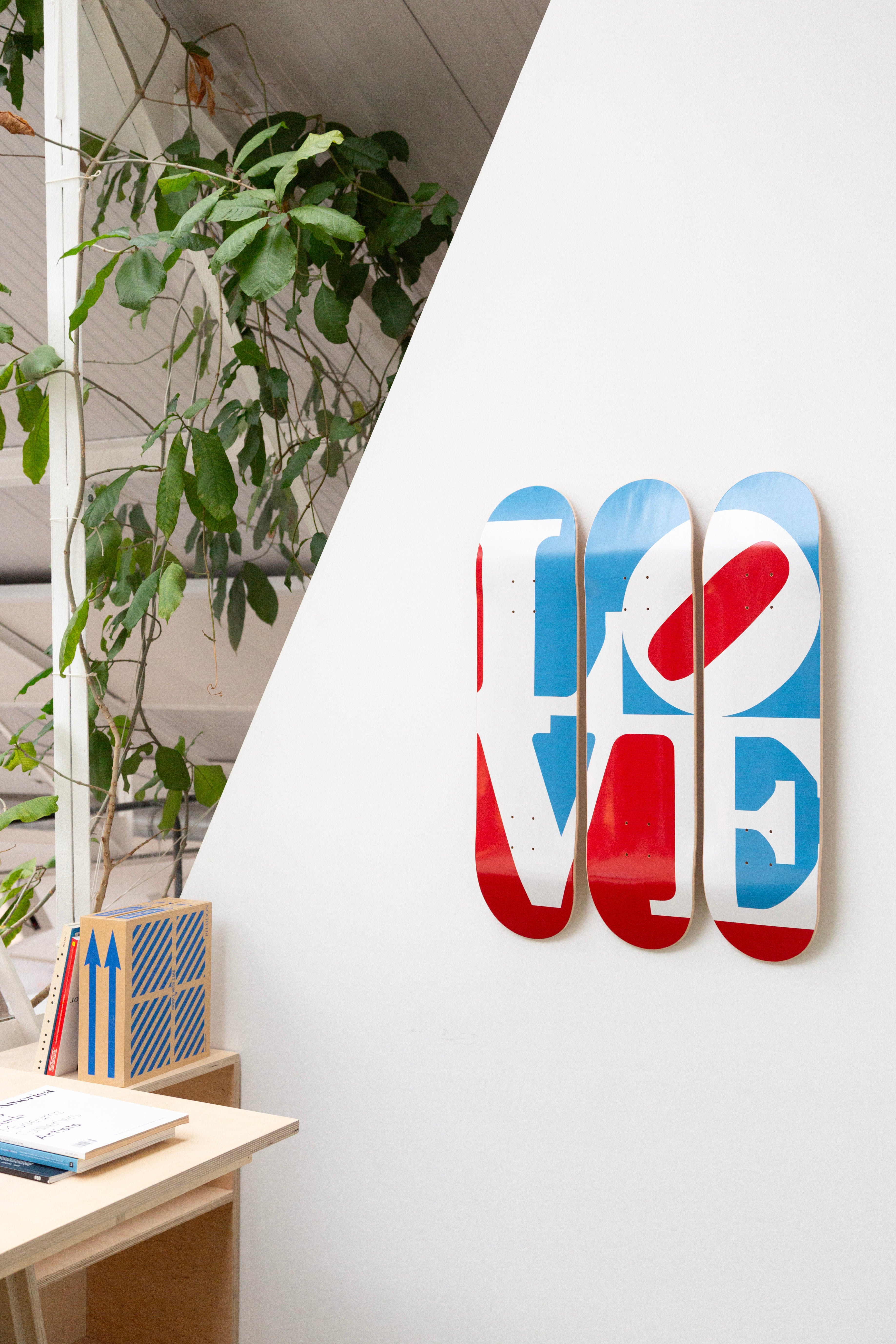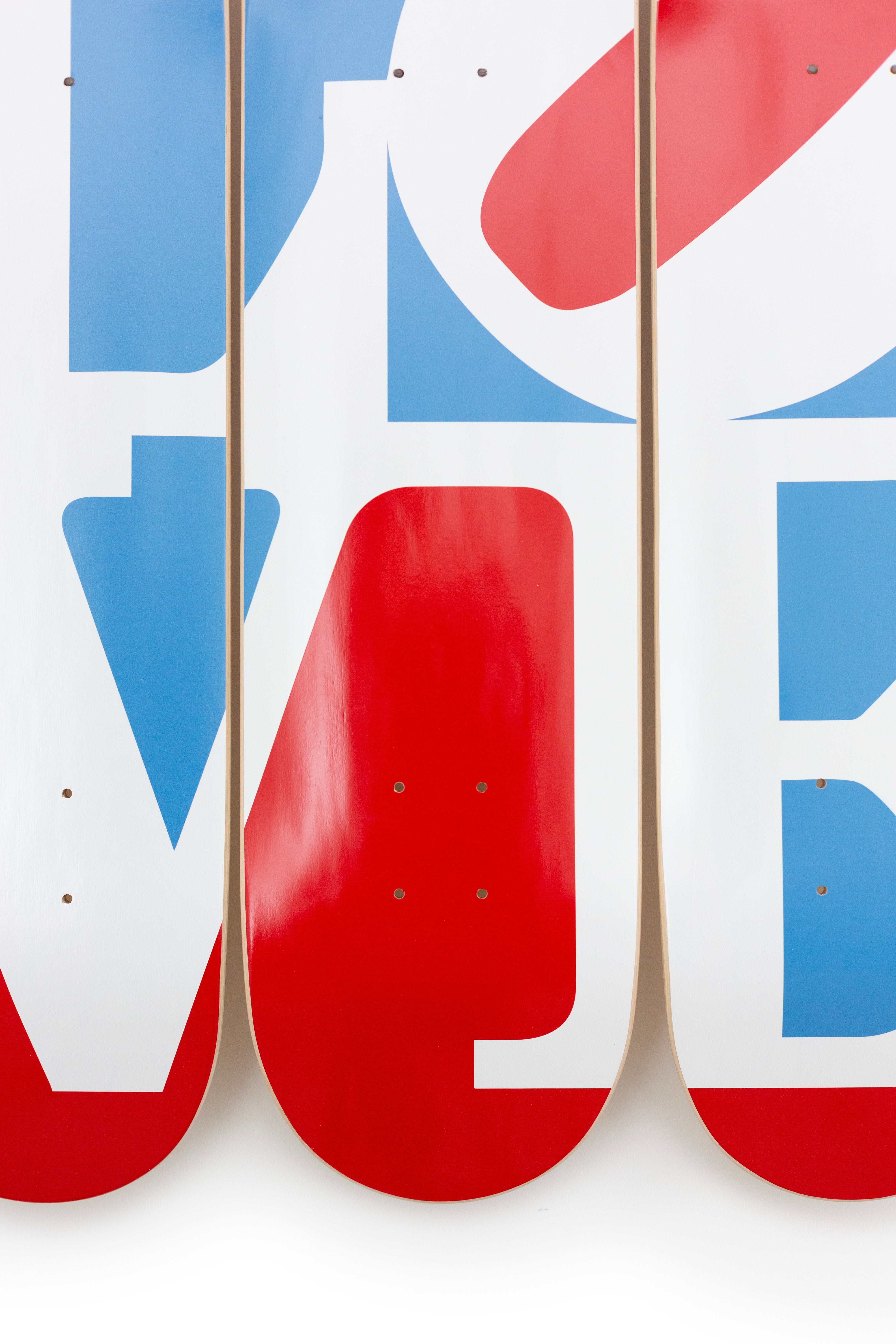Dieses Triptychon besteht aus drei Skateboard-Decks aus 7-lagigem kanadischem Ahornholz der Güteklasse A. © Morgan Art Foundation, LLC. Lizenziert durch... Lesen Sie mehr Lesen Sie mehr