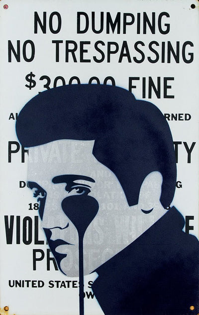 Old metal sign hand painted by Pure Evil with stencil and spray paint. Signed and dated on verso with black... Read more Read more