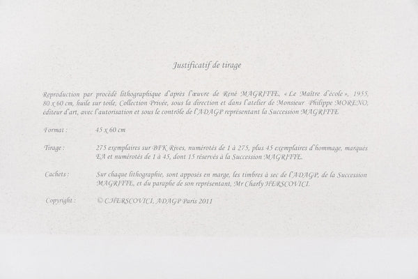 Lithograph on BFK Rives paper plate signed and numbered of a limited edition of 275 copies. Printed by Art-Lithographies studio,... Read more Read more