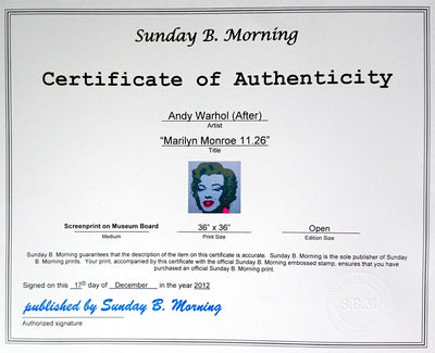 Screen print on museum board paper after Andy Warhol and published by Sunday B. Morning. Inscriptions on the back: "Published... Read more Read more