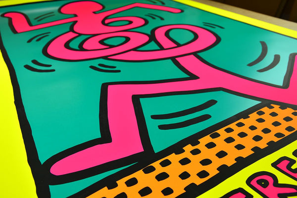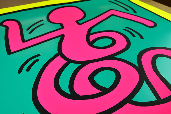 5 color silkscreen on paper, printed by Serigraphie Uldry Bern, Switzerland. Keith Haring created over 80 unique posters throughout his career.... Read more Read more