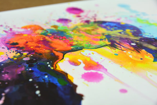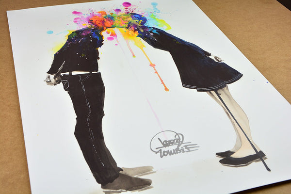 This print belongs to an open edition and depicts a colourful kiss, based on Lora Zombies' iconic work "Big Bang... Read more Read more