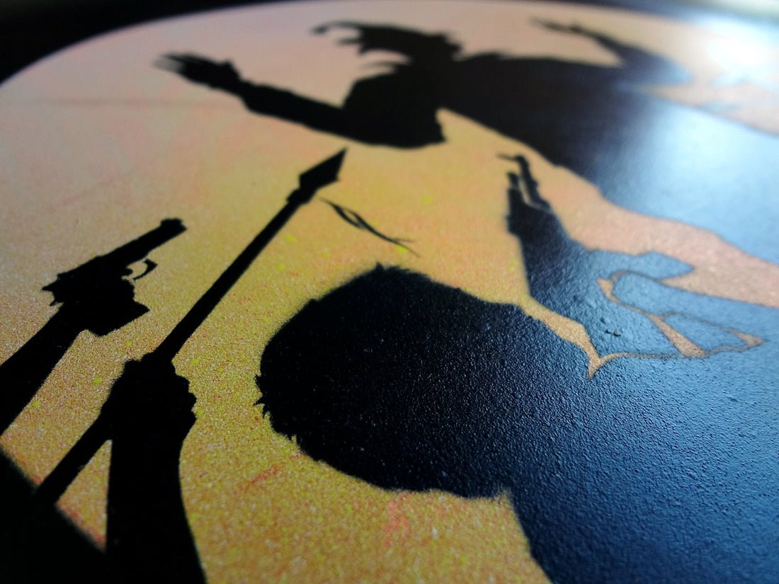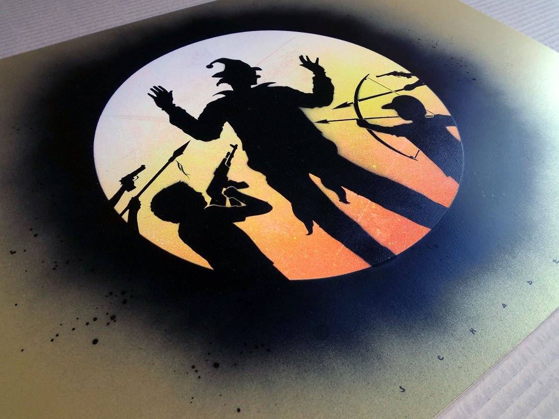 Artwork completely hand made by Otto Schade, created with two layers of cut stencils and five colors of spray paint... Read more Read more