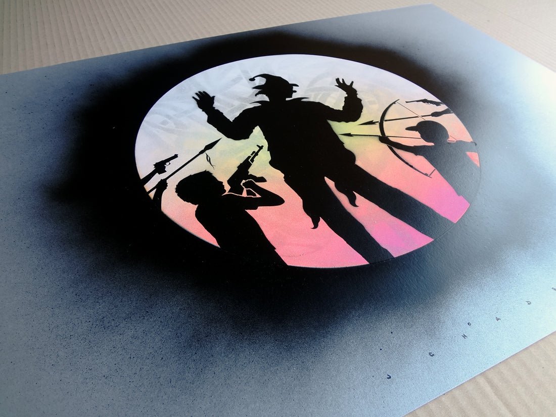 Opera d'arte completamente realizzata a mano da Otto Schade, realizzata con due strati di stencil tagliati e cinque colori di... Per saperne di più Per saperne di più
