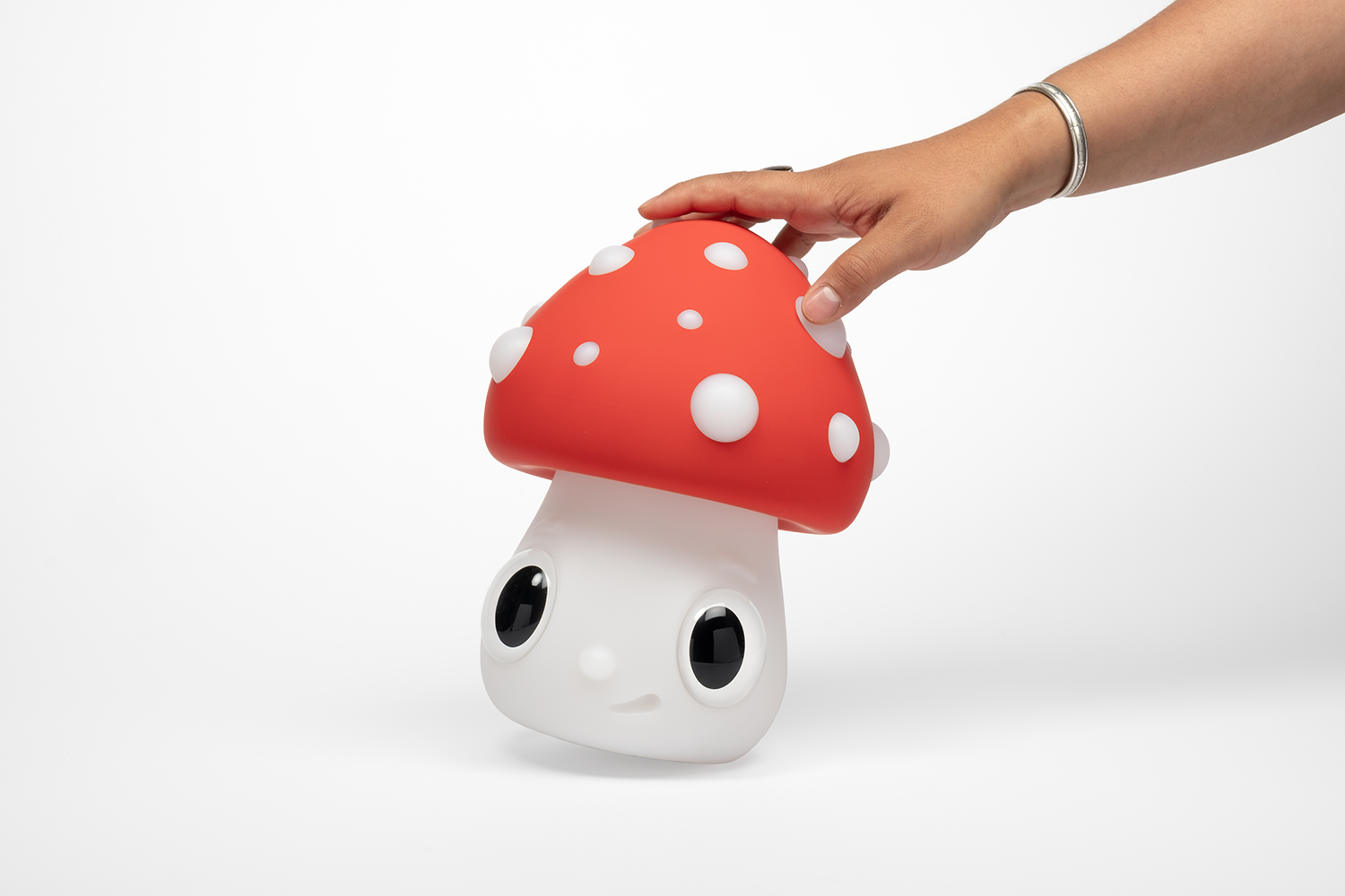 From a technical perspective, the Nightlight Mushroom is crafted from high-quality rotomolded vinyl, ensuring a smooth surface and flawless finish. Its LED base is USB-rechargeable, providing up to 8 hours of continuous illumination. Additionally, a touch-sensitive system allows for three brightness levels, making it adaptable to different environments and needs. With its compact and versatile design, the lamp is both a decorative and functional piece, seamlessly blending art and design in a way that embodies Calleja’s creative vision.