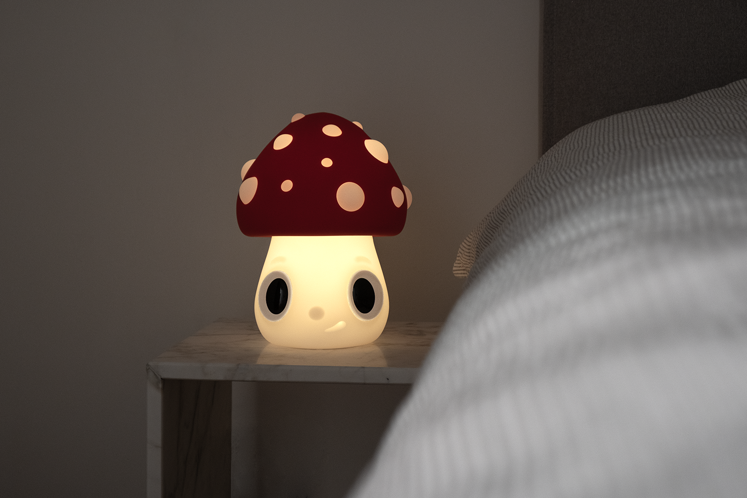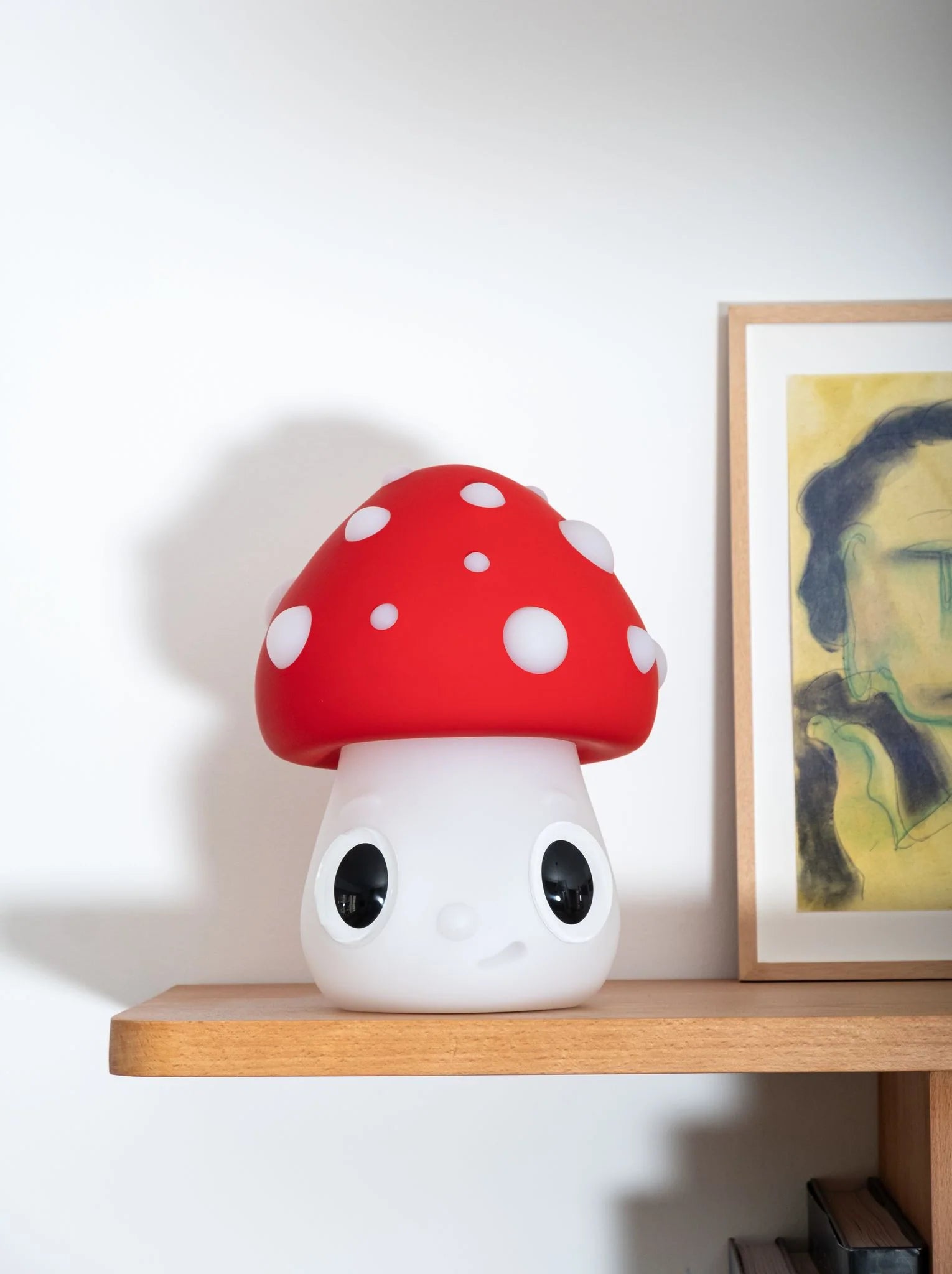 The Nightlight Mushroom by Javier Calleja is a limited-edition lamp that goes beyond its function to become a collectible art piece. This character, with its unmistakable aesthetic, is inspired by a design first introduced on paper in 2021 with Time After and later evolved into a painting in the Lean on Me solo exhibition at Almine Rech Gallery in London in 2023. Now, in this three-dimensional form, the figure takes on new life as an illuminated design that enhances its expressive nature and presence in any space.
